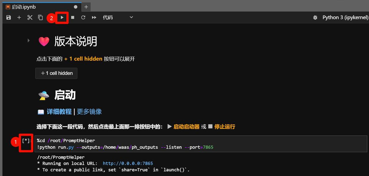 运行完成后推出 jupyterlab 点击 7860 端口的回传链接
