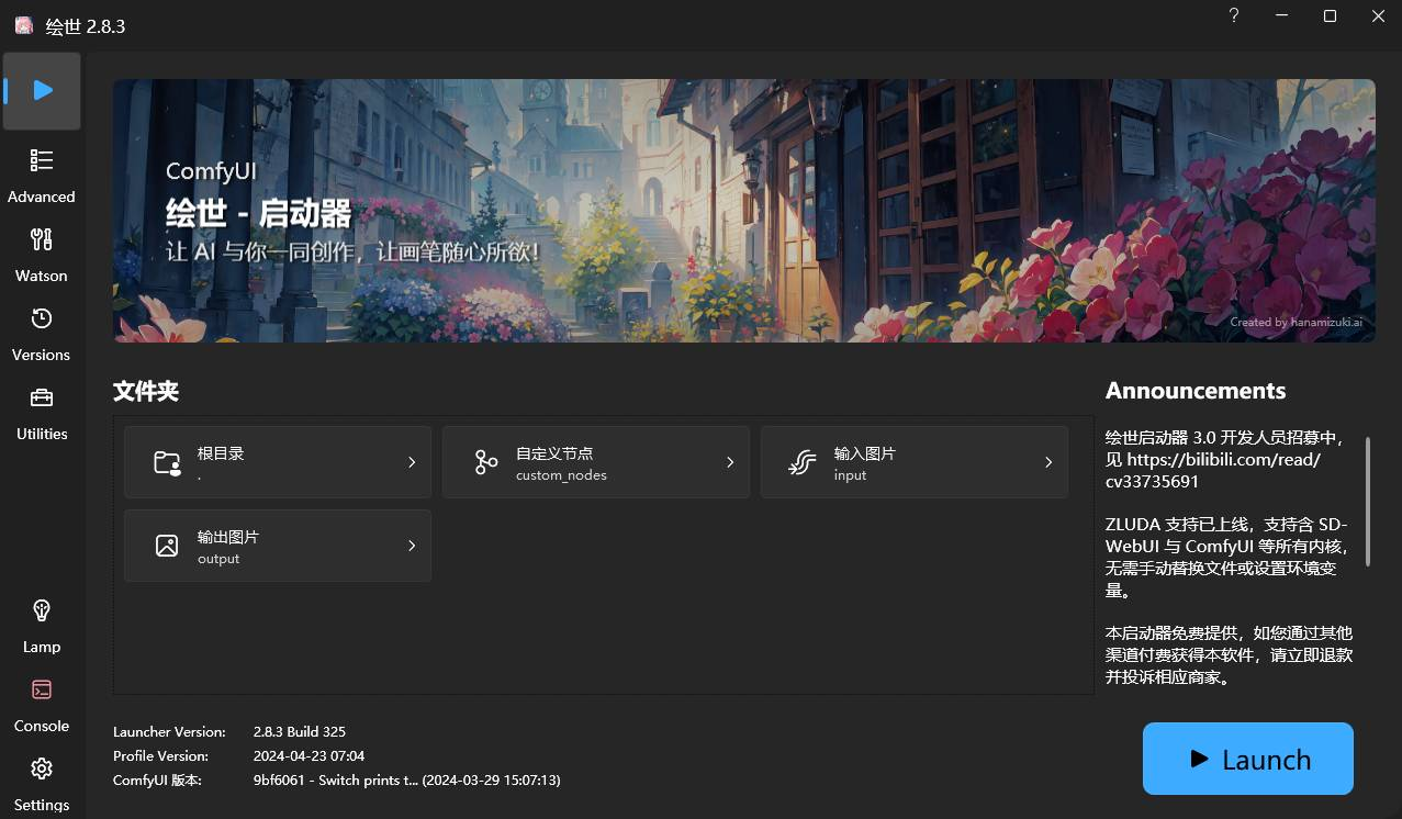 秋叶安装视频:【AI 绘画】ComfyUI 整合包发布!https://www.bilibili.com/video/BV1Ew411776J/ 秋叶的一键启动器也比较无脑,直接下载安装包即可,它的优势之处就是能避免官方整合包出现的代码报错,以及他下载节点插件都会更方便一点。打开 ComfyUI 的根目录,找到启动器文件,直接双击启动即可。ComfyUI 启动器的 UI 界面与 WebUI 启动器界面一致,功能不同而已,所以插件安装、版本升级就不说了,直接点击【一键启动】即可。