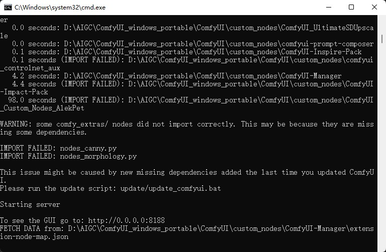 Starting serverTo See the GUI go to: http://192.168.3.58:8188 // 这里的网址可能设备显示的不同