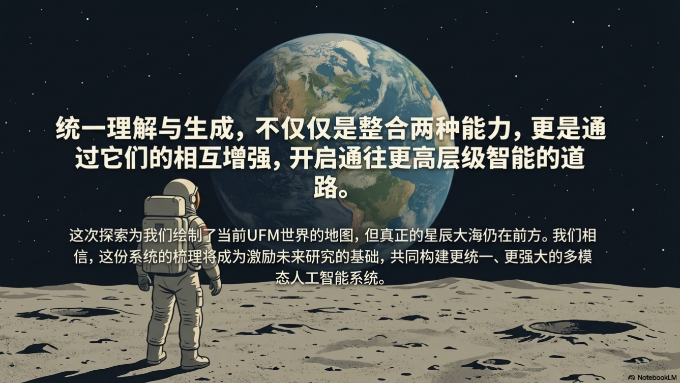 展望未来,数据工程的创新、全面评估体系的建立以及模型架构(如专家混合、统一分词器)的突破,将是驱动该领域持续发展的核心动力。与此同时,实现复杂的交错推理能力和为双重任务设计有效的偏好对齐算法,仍是亟待解决的关键挑战。最终,对 UFM 的追求不仅仅是一项技术挑战,它更是对机器真正“理解”和“创造”意味着什么这一根本问题的直接探索。随着这些模型的演进,它们不仅将重新定义人工智能的边界,也将成为我们审视智能本质的一面强有力的全新透镜。