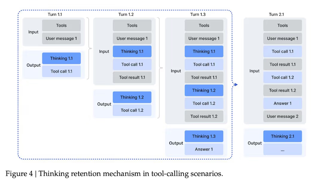 DeepSeek V3.2 还悄悄修补了智能体思维模型的一个大痛点:如何通过频繁的工具调用来管理上下文。