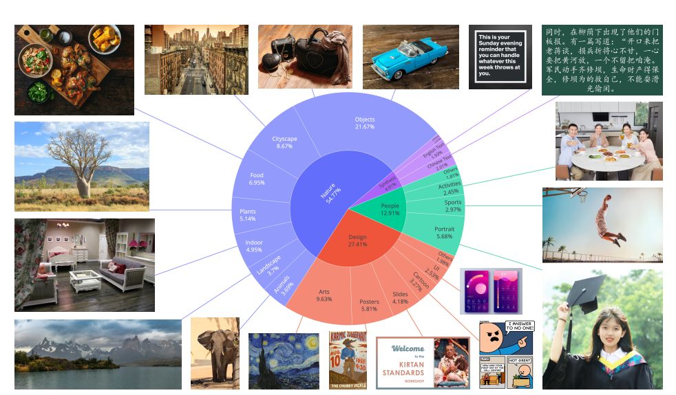 这是最让我感兴趣的部分。他们合成了 8000 万中英段落,专门用于训练模型的文本渲染能力。中文文本渲染数据占总合成量的 45%,覆盖了 8105 个常用字。