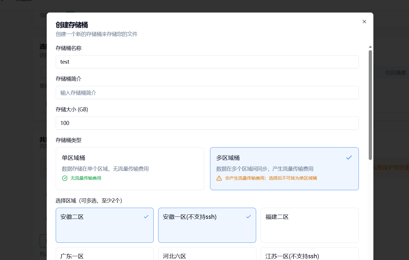 • 单区域桶无流量传输费用,多区域桶会产生区域间同步费用