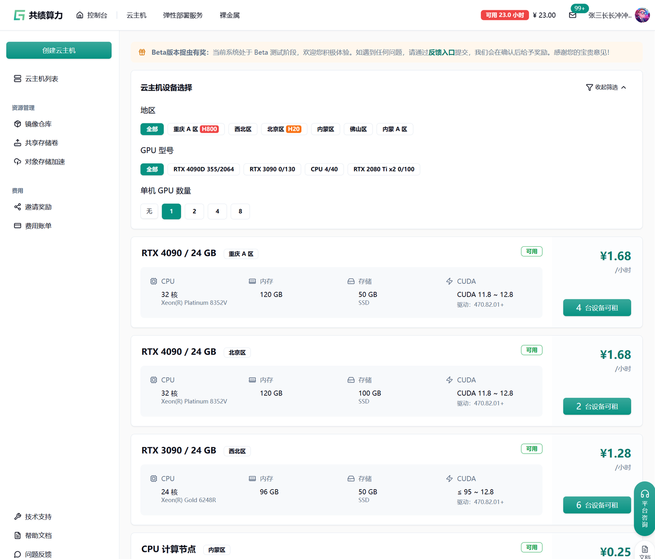 点击顶部【云主机】 → 进入云主机管理界面 → 选择可用设备资源