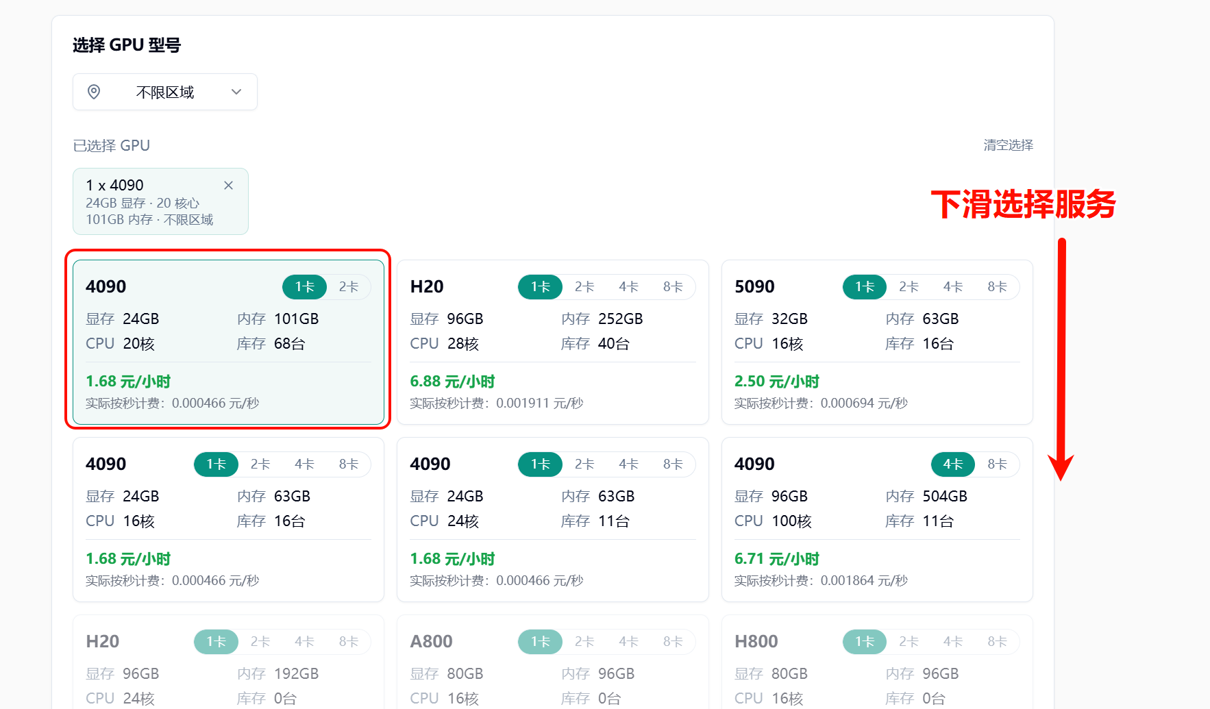 Section titled “2. 基于自身需要选择所需配置”参考配置:4090,1 卡