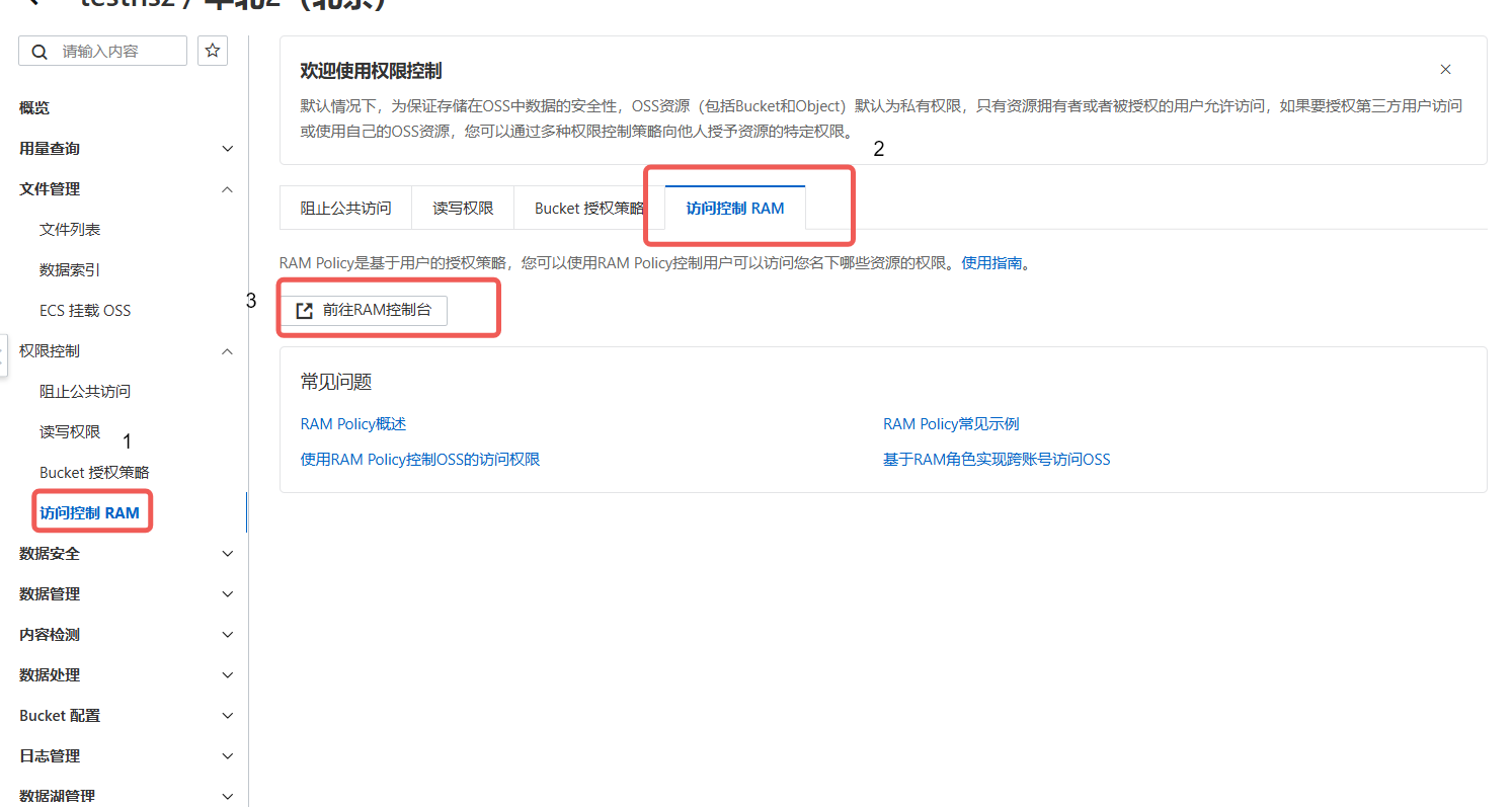 Section titled “4.5 生成访问密钥:在 RAM 控制台创建子账号,授予OSS读写权限,生成 AccessKey 和 SecretKey”