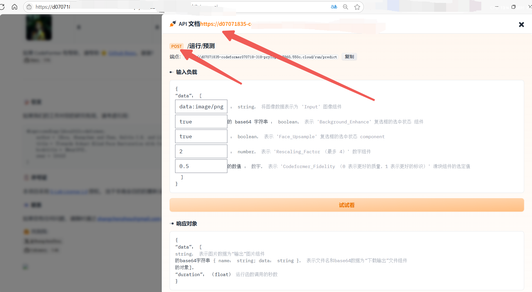 # 步骤 3: 发送 POST 请求 print(f"正在向 CodeFormer API ({API_URL}) 发送请求...") response = requests.post(API_URL, json=payload, timeout=300) # 设置 300 秒超时 response.raise_for_status() # 如果请求失败 (例如 4xx 或 5xx 错误), 则会抛出异常