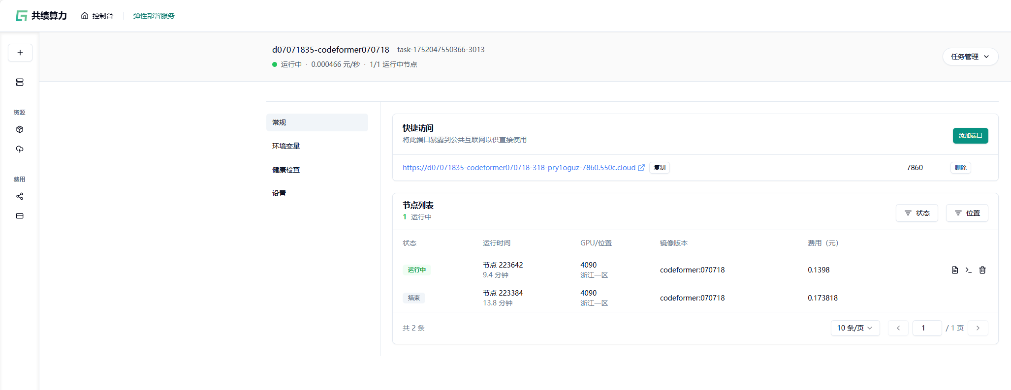 部署完成后,在“快捷访问”中复制端口为 7860 的公网访问链接,后续是通过该地址调用服务。