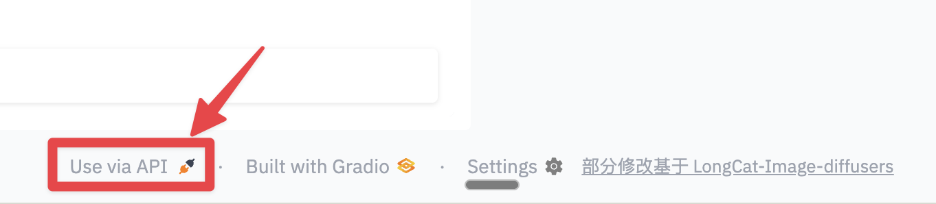 Section titled “3 API 调用测试”Gradio 页面右下角点击「Use via API」可以查看完整调用示例: