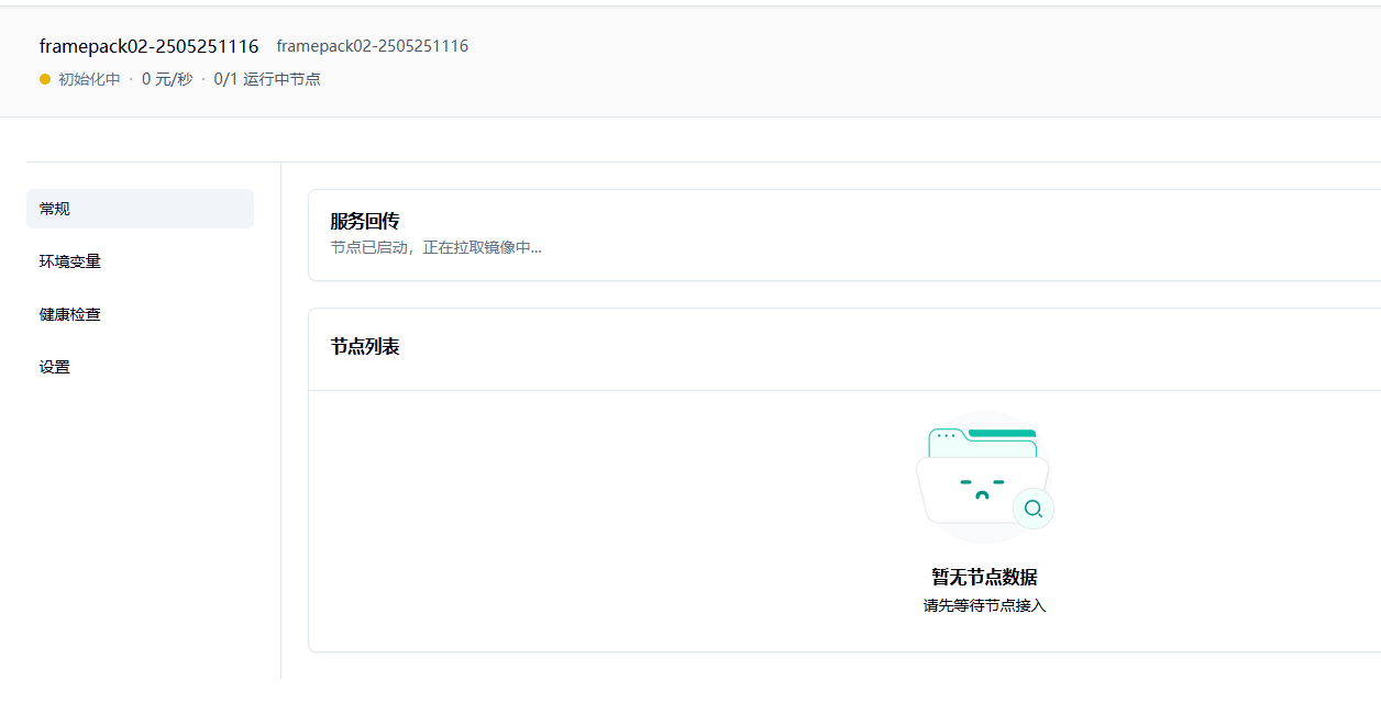 1.4 点击部署服务,耐心等待节点拉取镜像并启动。