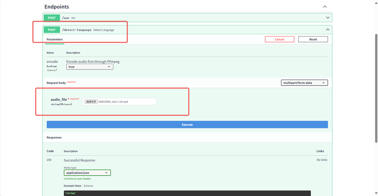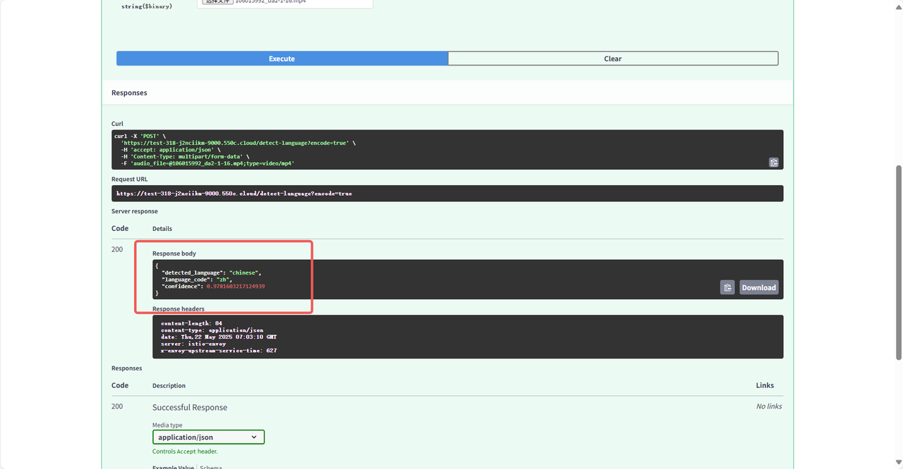 /detect-language:语言检测接口,上传音频或视频文件,输出语言。