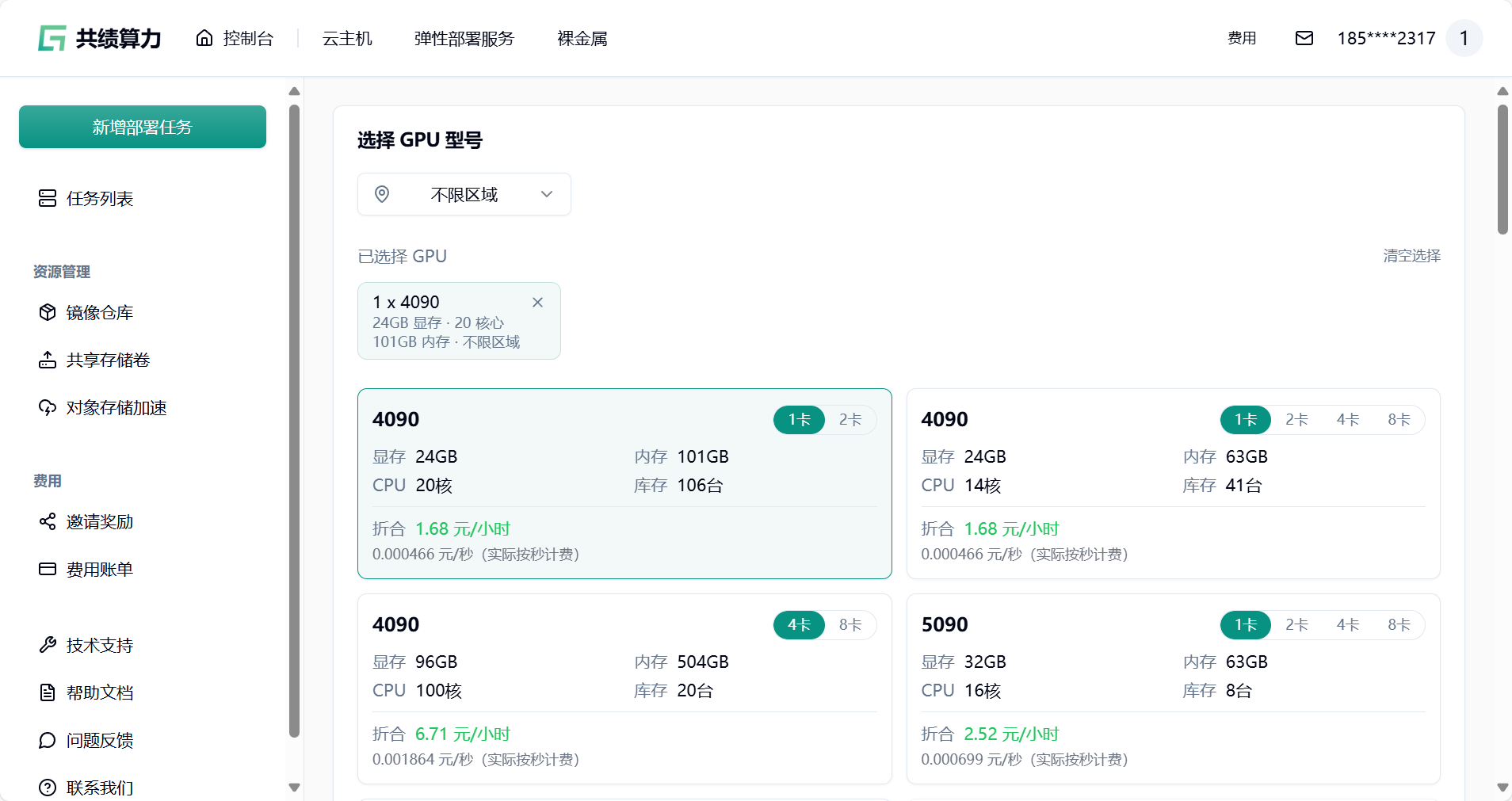 Section titled “1.1 访问共绩算力控制台 https://console.suanli.cn,点击新增部署。”