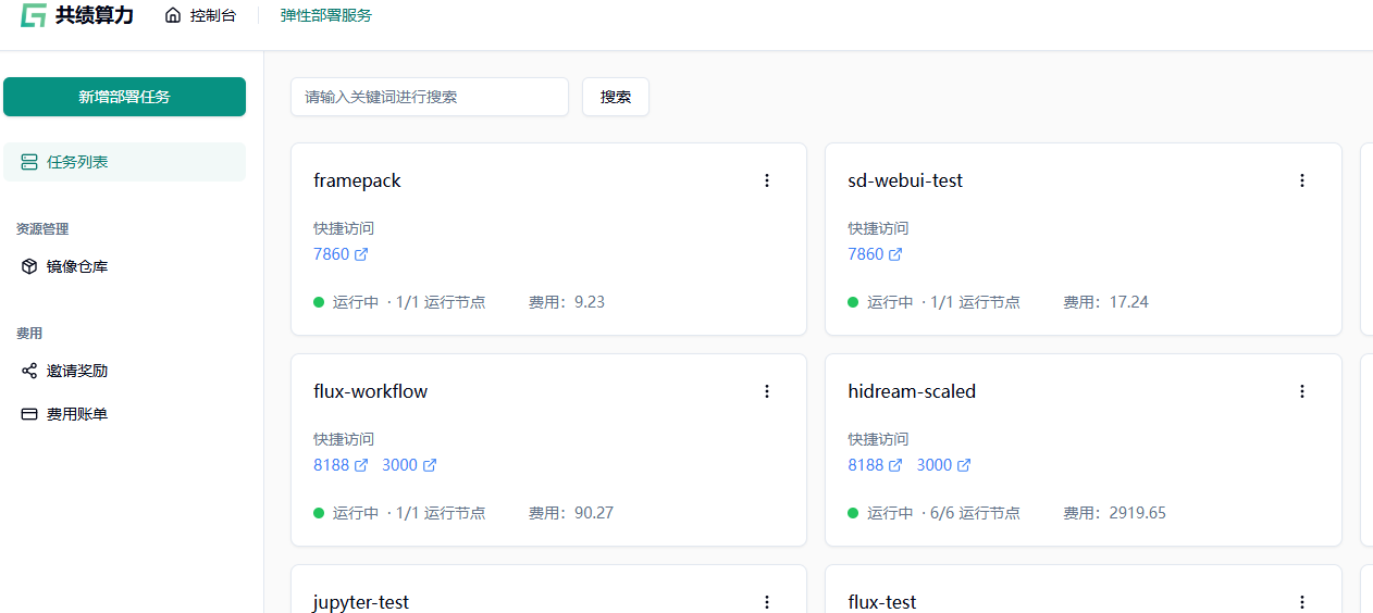 Section titled “1 部署步骤”1.1 访问共绩算力控制台 https://console.suanli.cn,点击新增部署。