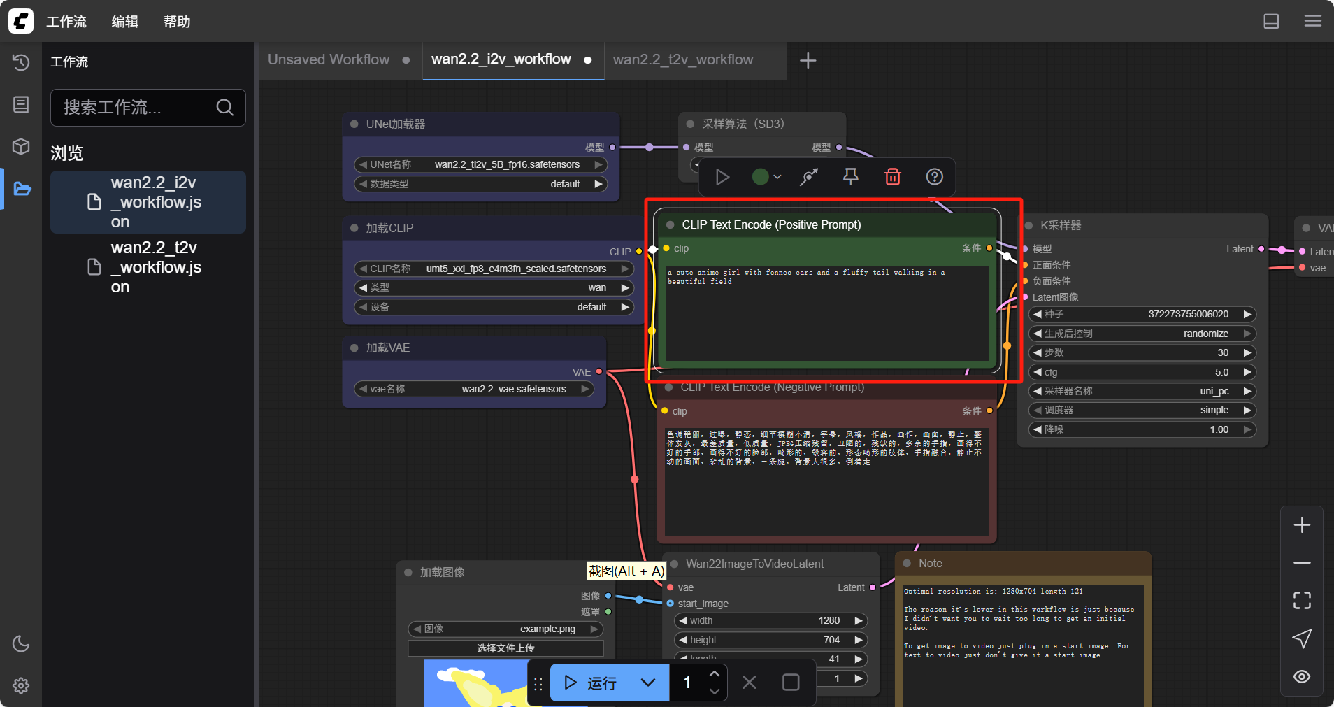 接下来,我们找到 prompt(提示词)的填写节点,输入生成视频的不同维度的提示词(支持中文)