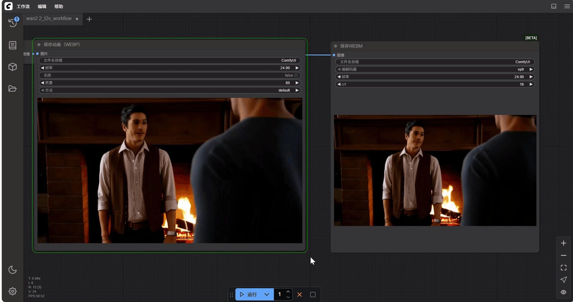 稍等片刻,即可在后方的“保存图像”节点看到基于我们的图片和提示词生成的视频。