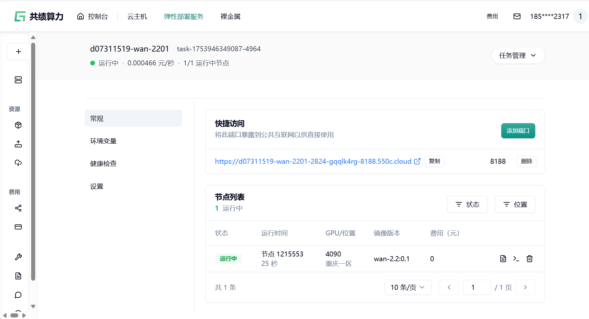 1.4 点击部署服务,耐心等待节点拉取镜像并启动。