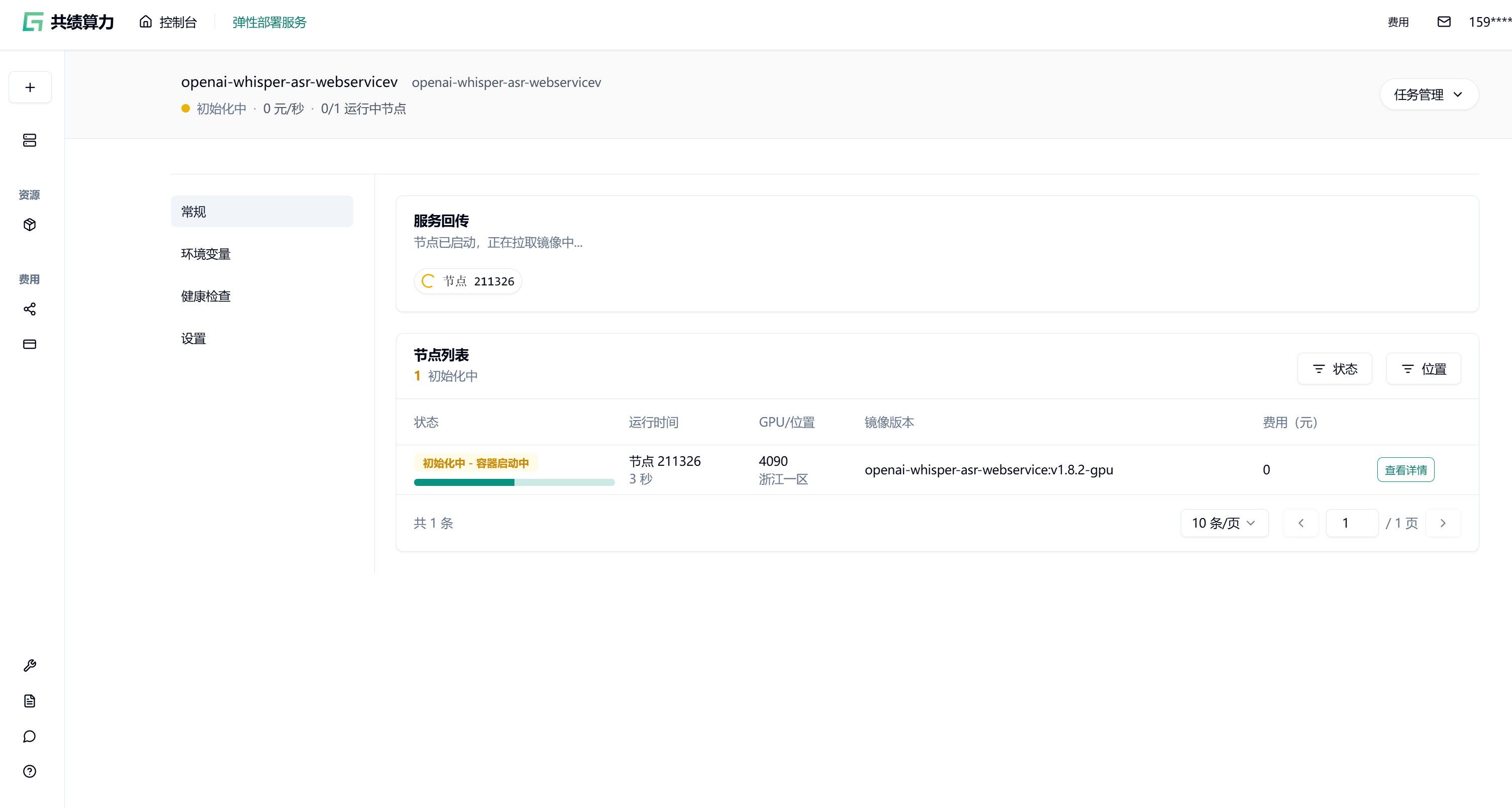Section titled “Q:镜像拉取过程收费吗?”最开始的拉取镜像过程(可能长达数小时)不收费。是否开始收费以服务是否成功部署为准,镜像上传阶段服务还在部署中,不收费。后续新增节点,镜像已缓存在集群中,可以快速拉取。