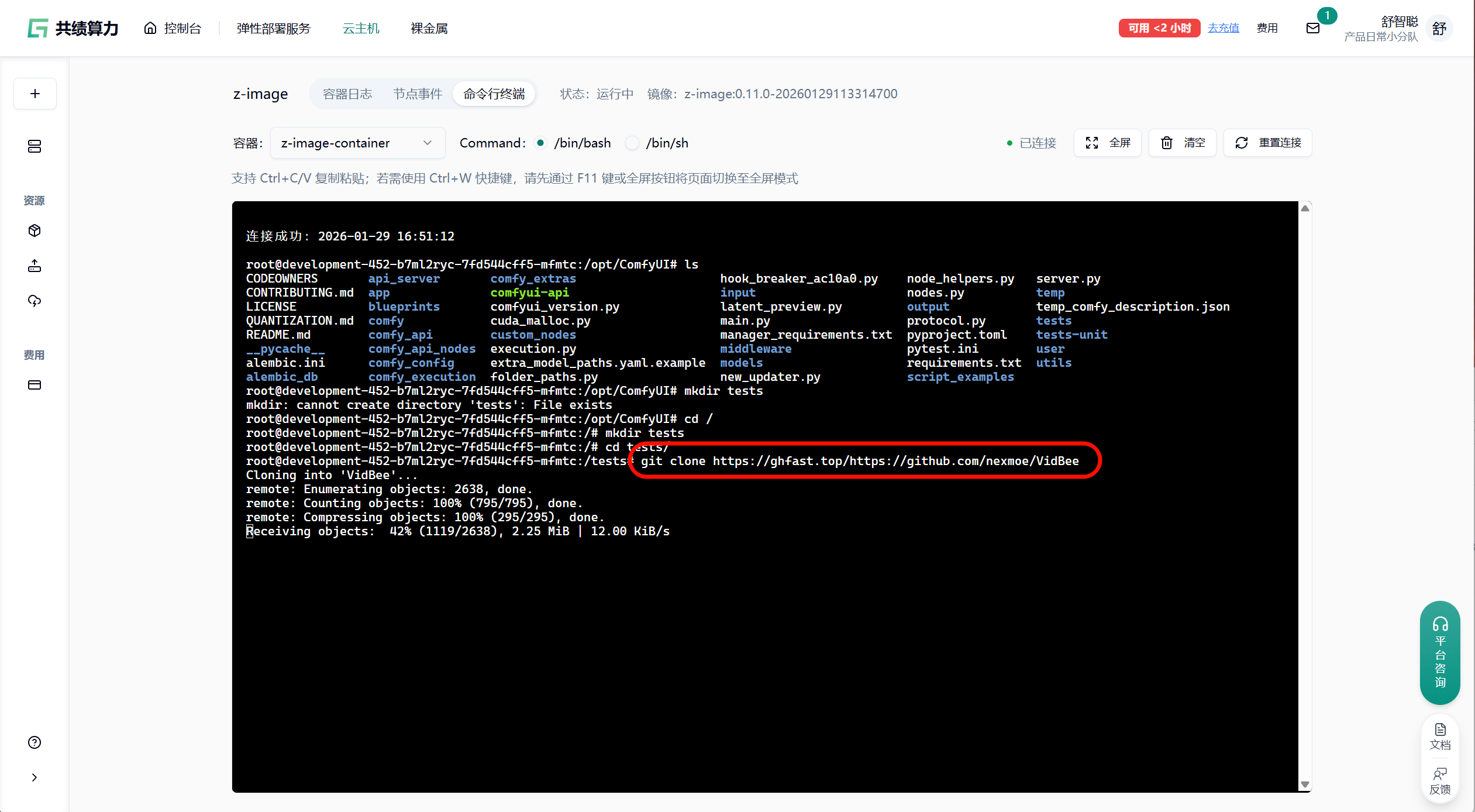 - 先在云主机中按照上述步骤完成 GitHub 加速下载、依赖安装、环境配置等操作。