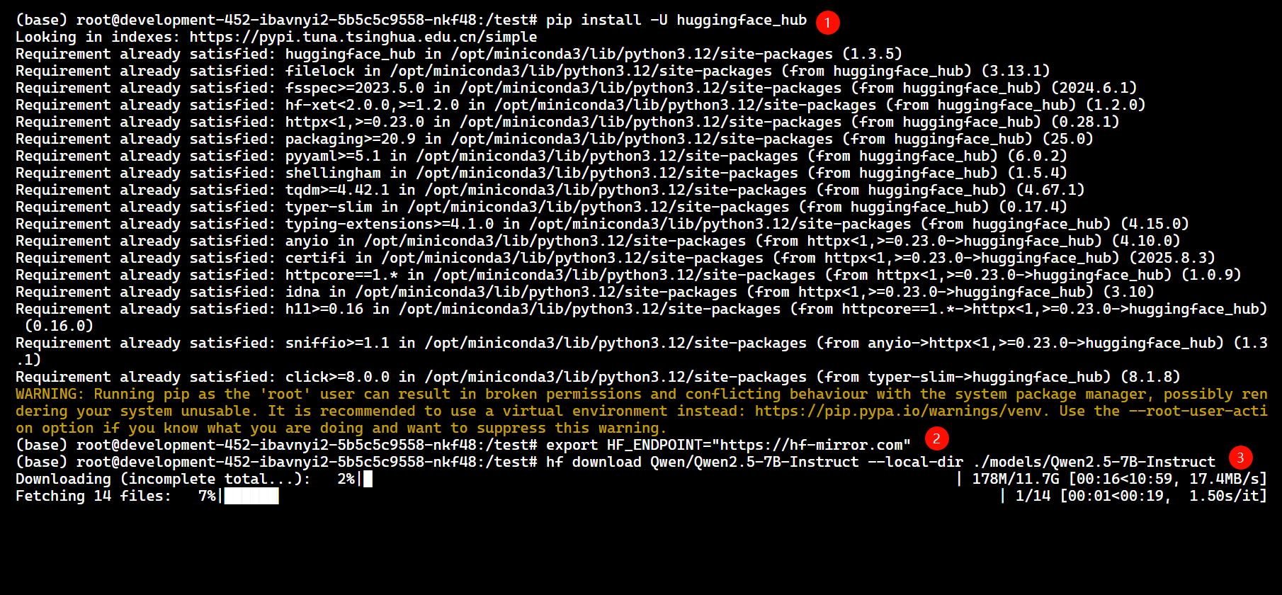 Section titled “下载模型示例”演示模型:Qwen/Qwen2.5-7B-Instruct