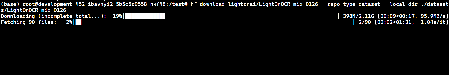 Section titled “下载数据集示例”hf download lightonai/LightOnOCR-mix-0126 --repo-type dataset --local-dir ./datasets/LightOnOCR-mix-0126