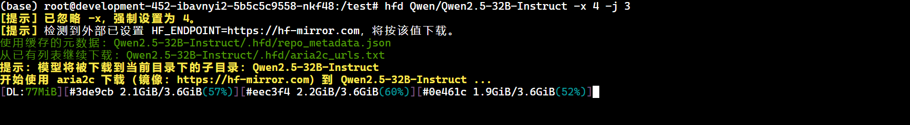 Section titled “设置并发与线程数”hfd Qwen/Qwen2.5-32B-Instruct -x 4 -j 3