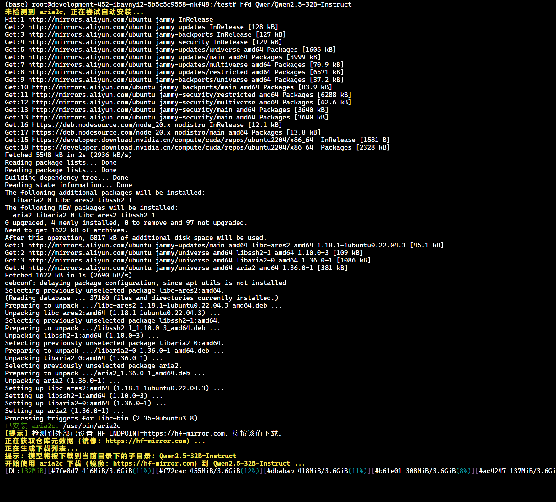 - 先在云主机中按照上述步骤完成 huggingface 加速下载、依赖安装、环境配置等操作。