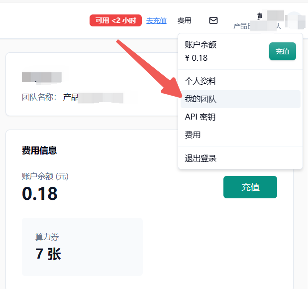 Section titled “2.可以通过控制台中点击个人设置 - 我的团队 进入团队信息后台”