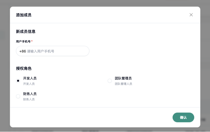 平台从 v1.8 版本之后支持团队账号管理功能,支持用户添加其他新成员加入自己的团队并分配角色权限,方便团队业务协作。