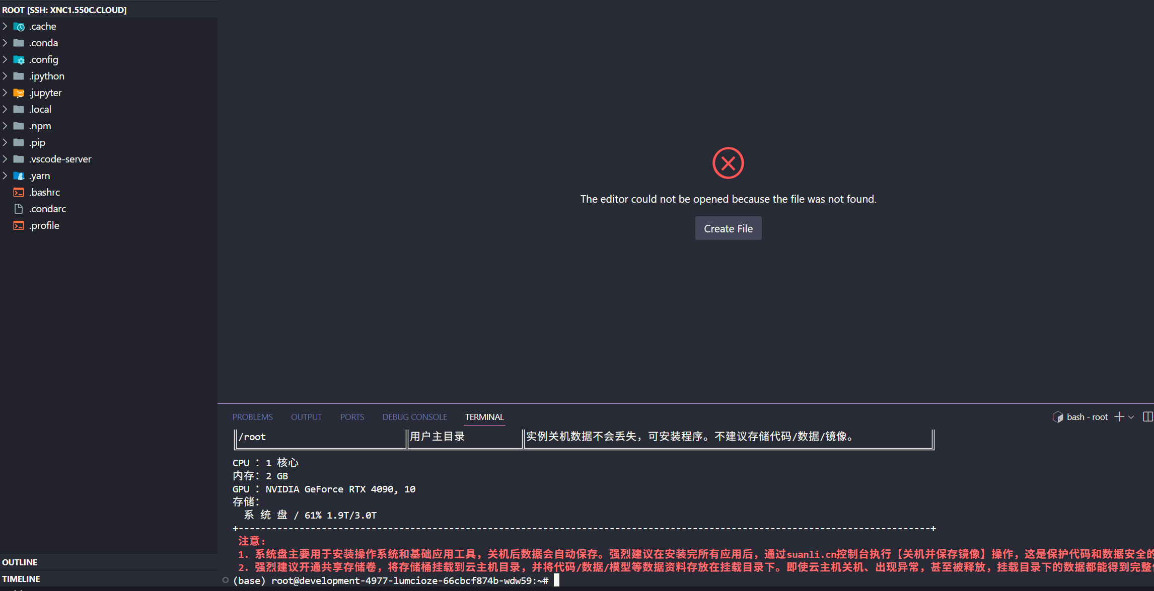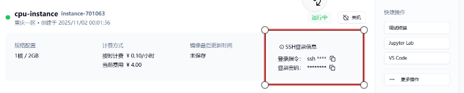本功能依赖于平台 ssh 连接功能。需要使用支持 ssh 连接的镜像。