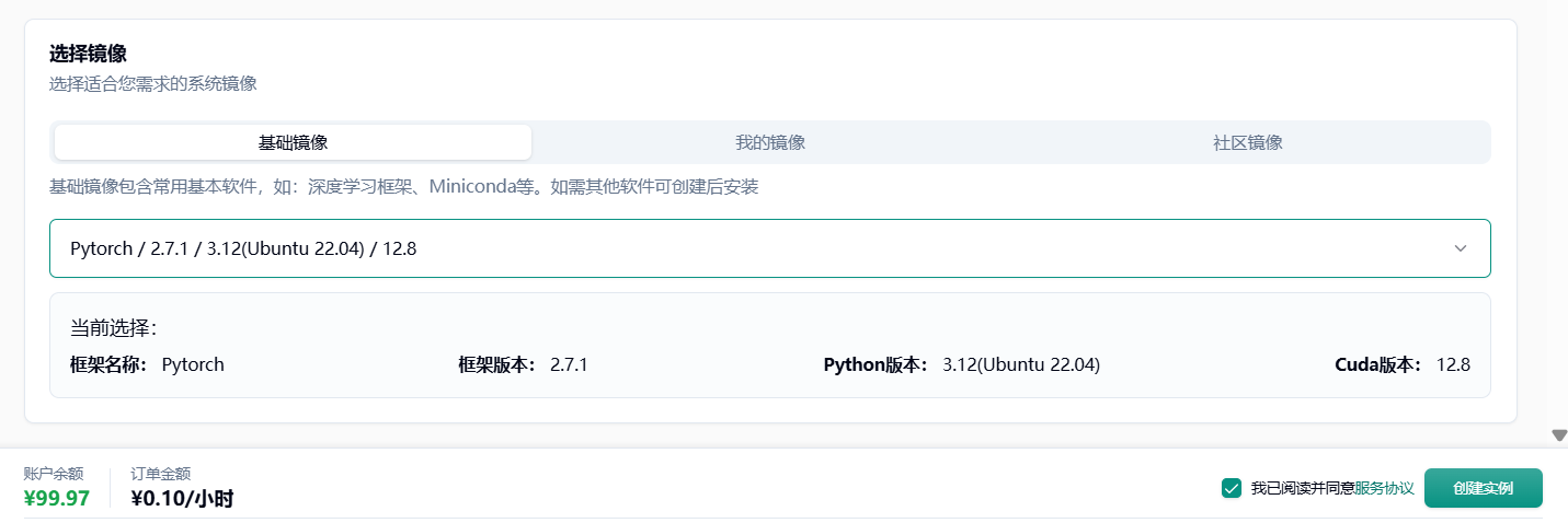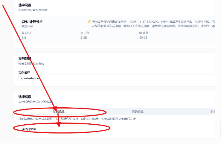 2.选择镜像 -> 基础镜像 -> 请选择镜像 ->