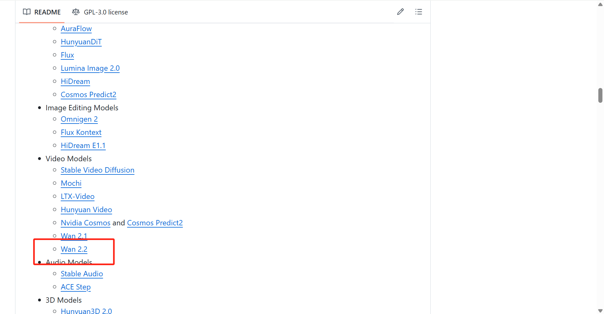 comfyUI_WAN2.2/├── diffusion_models/│ └── wan2.2_ti2v_5B_fp16.safetensors├── text_encoders/│ └── umt5_xxl_fp8_e4m3fn_scaled.safetensors├── vae/│ └── wan2.2_vae.safetensors├── workflow/│ ├── wan2.2_i2v_workflow.json│ └── wan2.2_t2v_workflow.json└── Dockerfile
