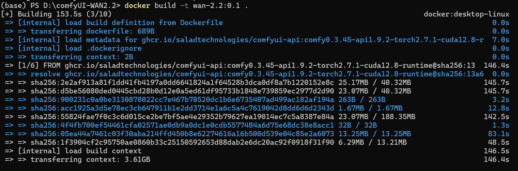 Section titled “二、通过 Dockerfile 构建自定义镜像(进阶方案)”这里从 0-1 起步构建一个 WAN2.2 镜像为示例: