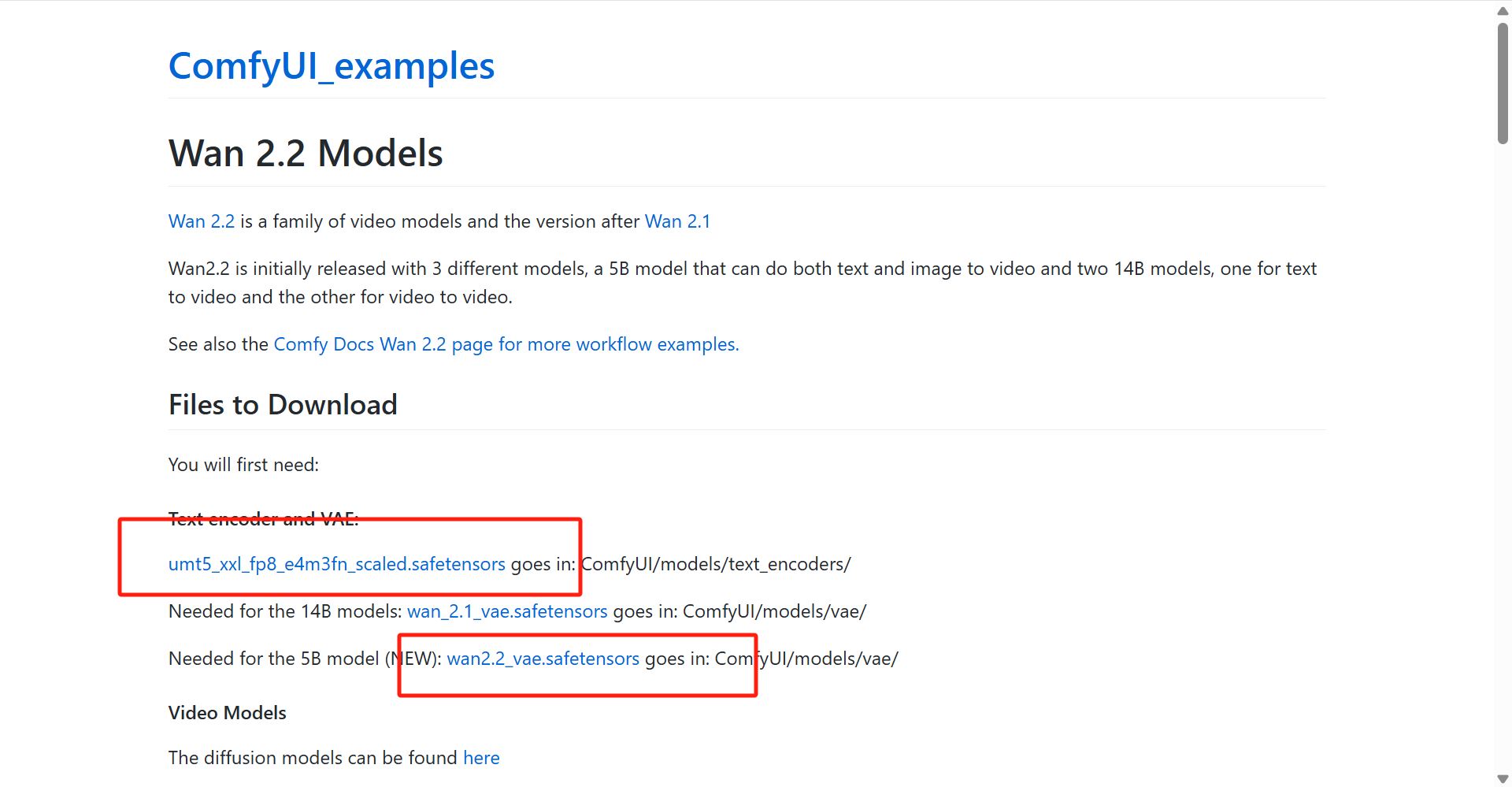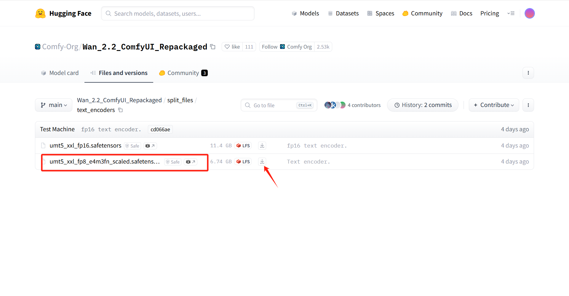 需注意的是“umt5_xxl_fp8_e4m3fn_scaled.safetensors”中有两个文件,下载 fp8 的那个