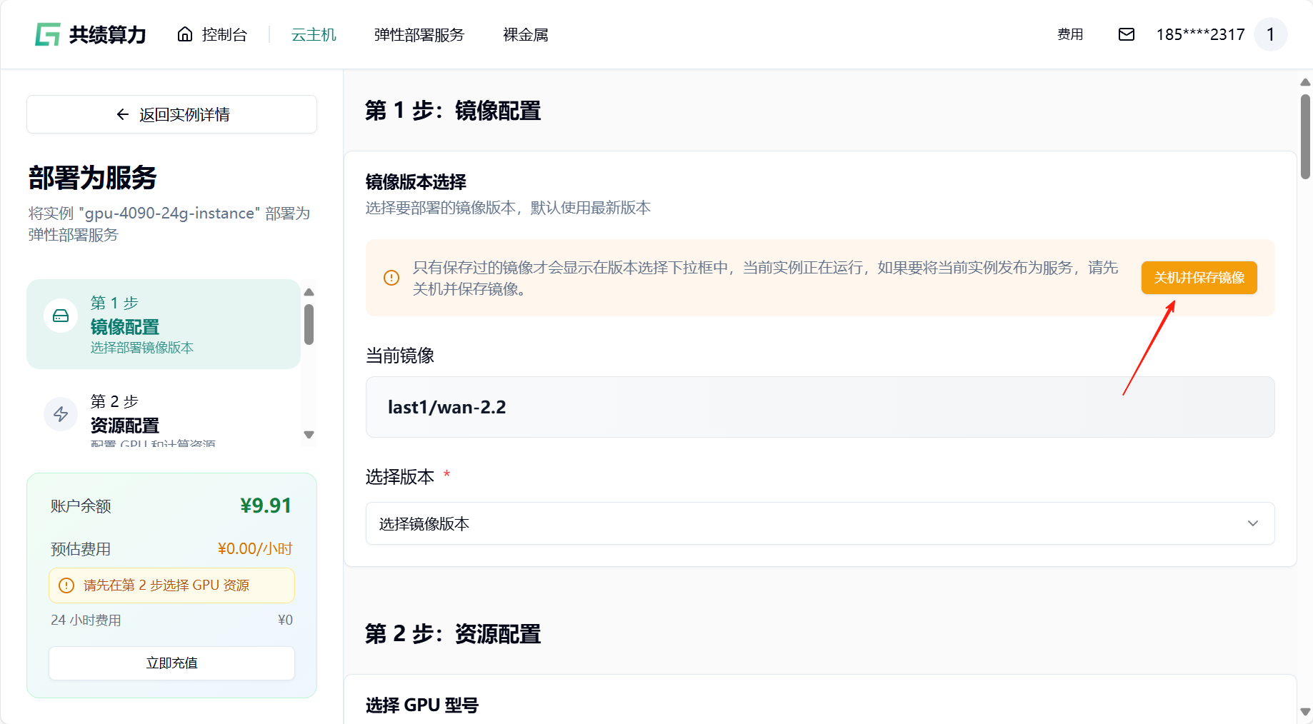 Section titled “3 打包镜像”可通过重新部署服务,发布为一个新的镜像,转换为弹性部署服务,方便下次使用