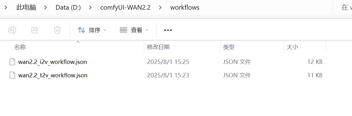 在“comfyUI_WAN2.2”中分别新建“diffusion_models”、“text_encoders”、“vae”、“workflow”文件夹