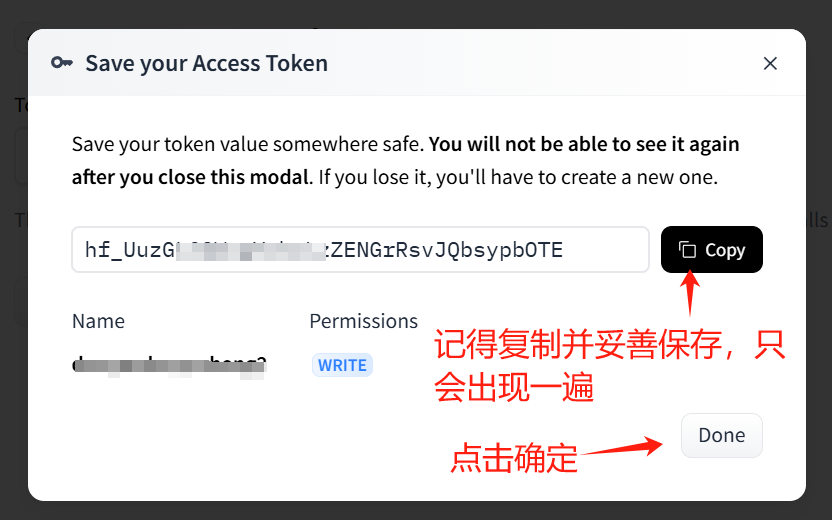 - 点击 creat new token,之后选择 write,创建新 token,记得复制并保存