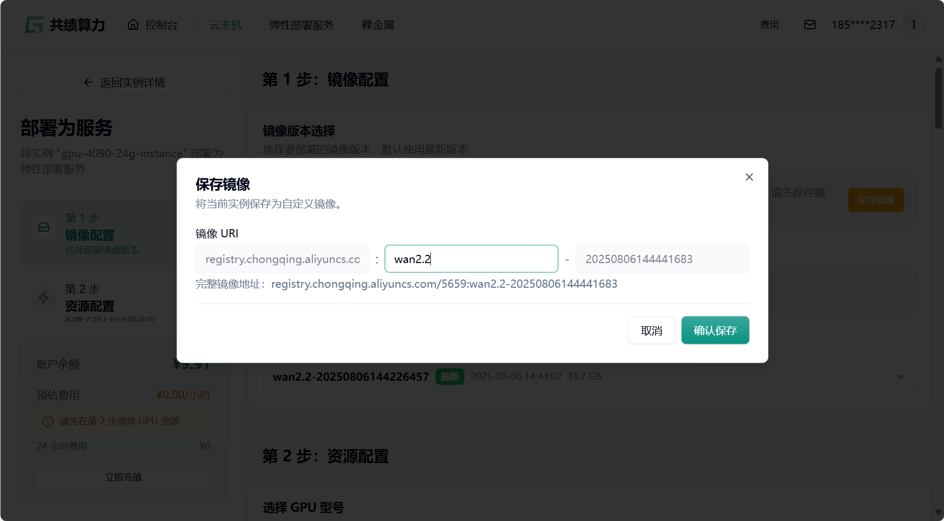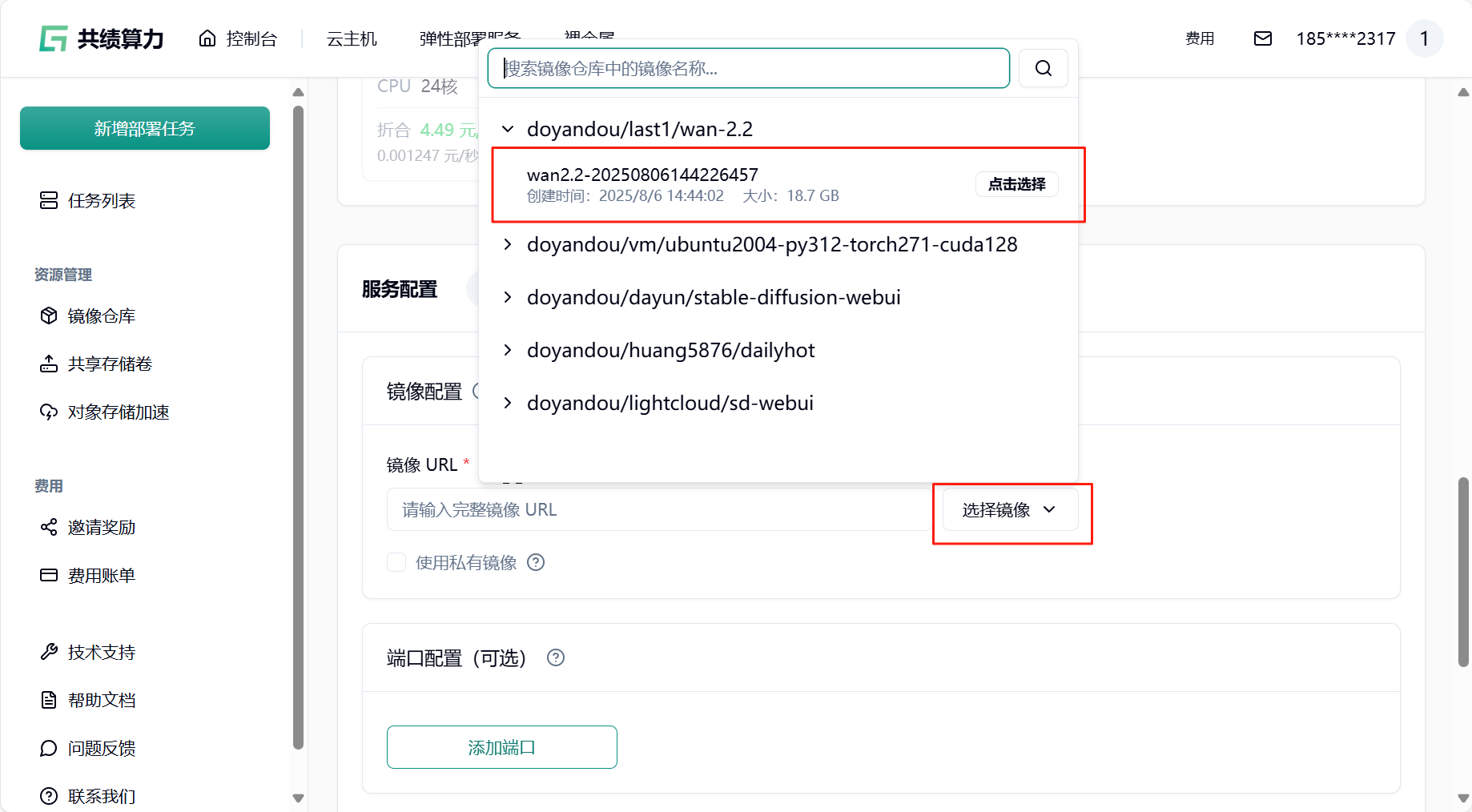 Section titled “1 在云主机上部署 WAN2.2”我们提供了构建完毕的 WAN2.2 镜像,您可以直接部署使用。