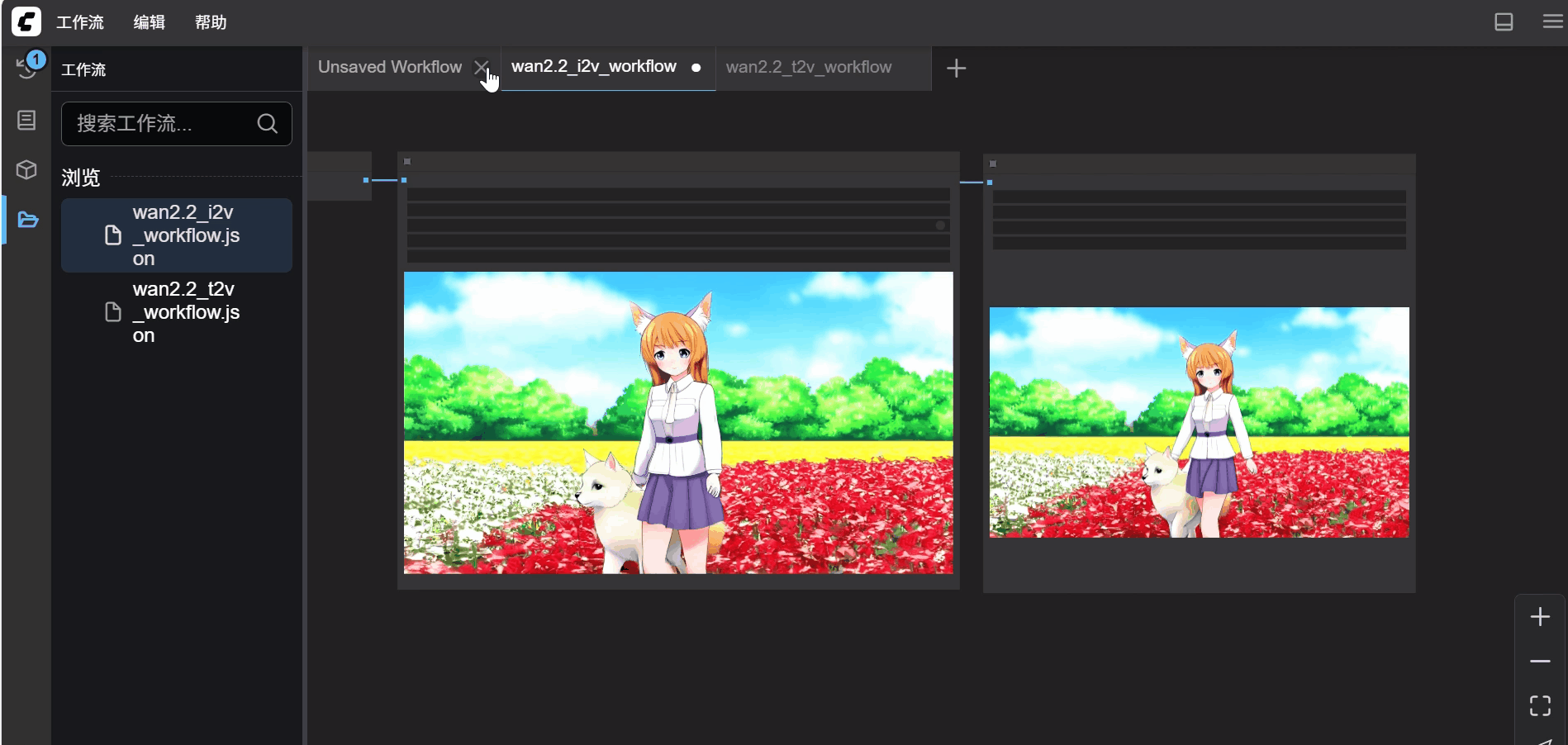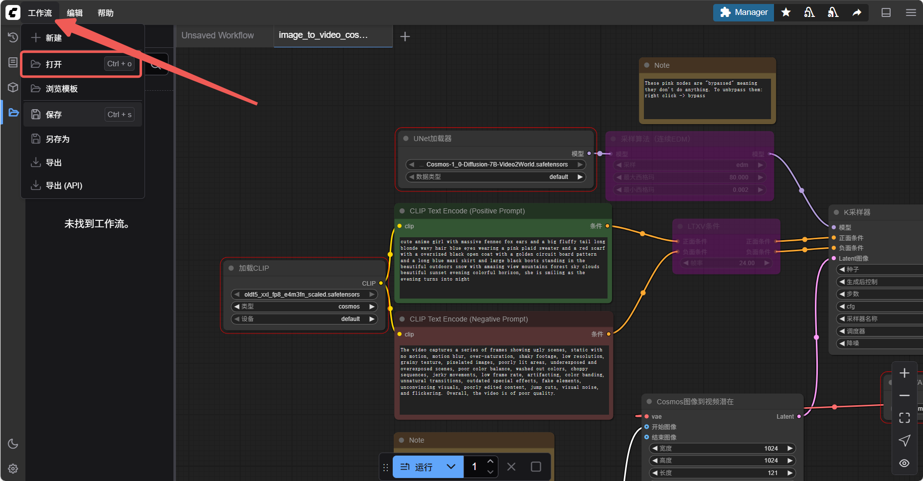 可以直接通过复制或者从上方菜单工作流中直接打开需要的工作流(json 文件)