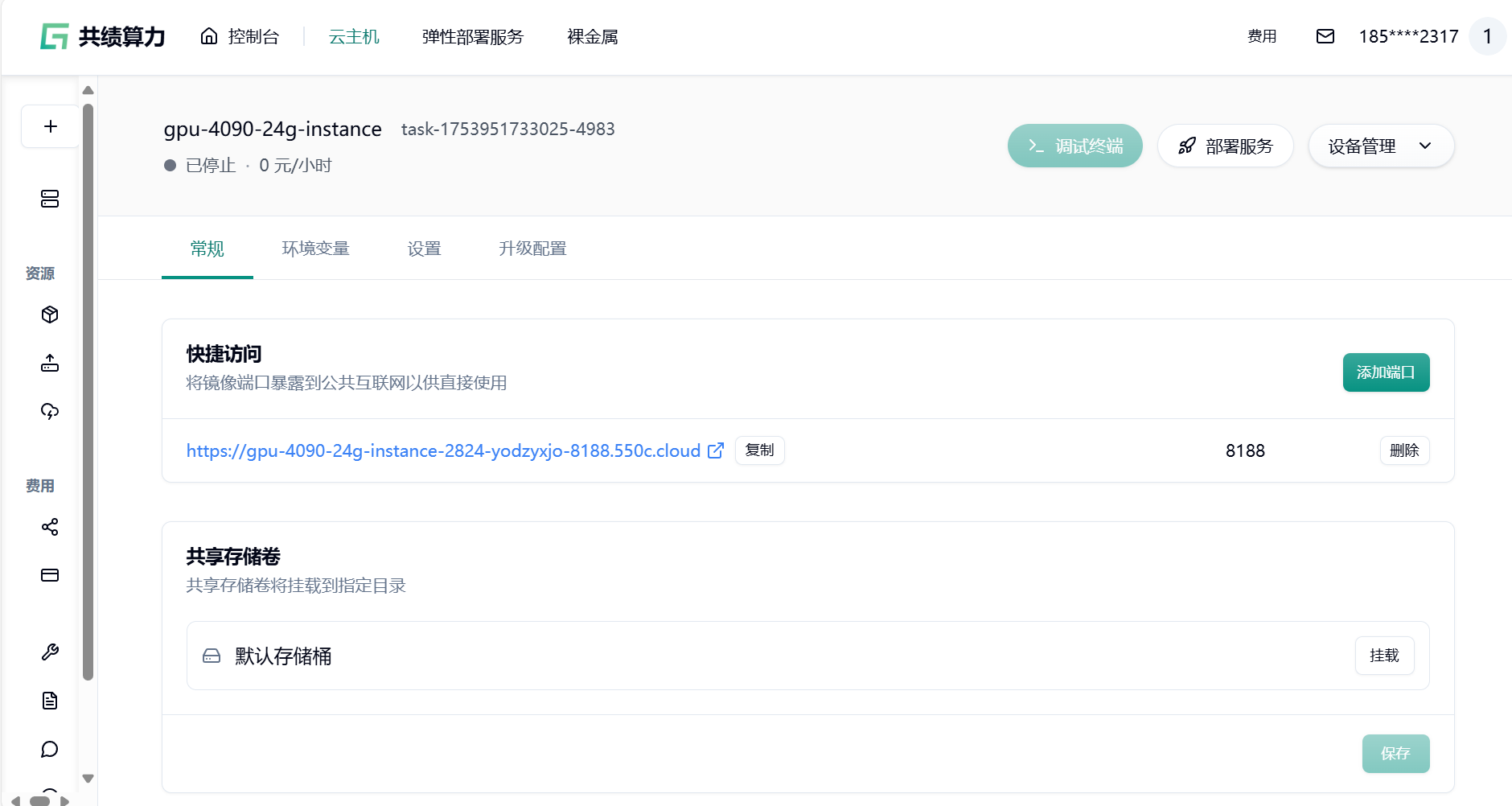 在线改完即存:先拉官方或社区成品镜像跑起来,边跑边调节点/模型,调试满意后“关机→保存为新镜像”,随时复用。